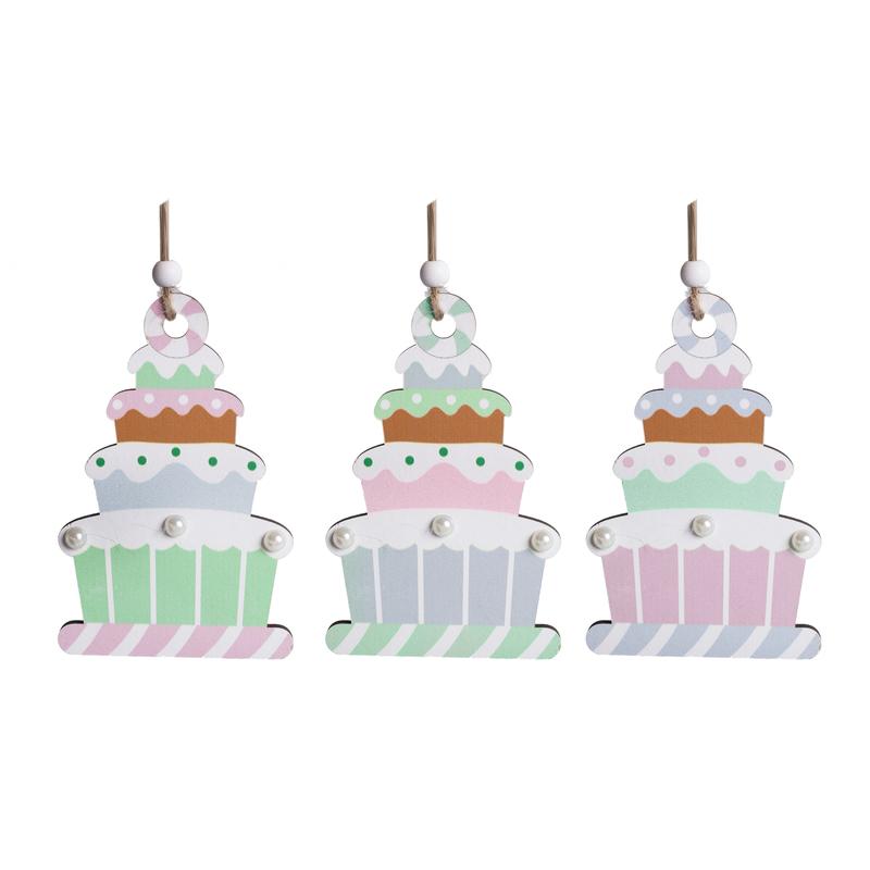 DREVENÁ ZÁVESNÁ POSCHODOVÁ TORTA, TYRKYSOVÁ A RUŽOVÁ