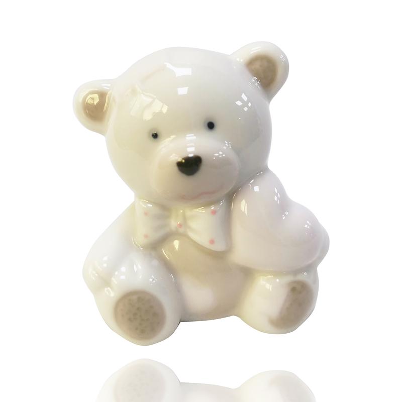 KERAMICKÝ MEDVEĎ SO SRDCOM A MOTÝLIKOM, SEDIACI, RUŽOVÝ