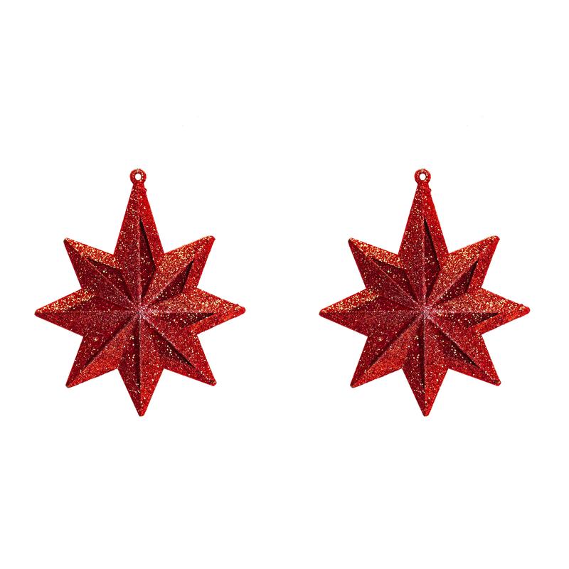 SADA VIANOČNÝCH OZDÔB HVIEZDA SO ZAVESENÍM, 2 KUSY, PRIESVITNÁ, ČERVENÁ
