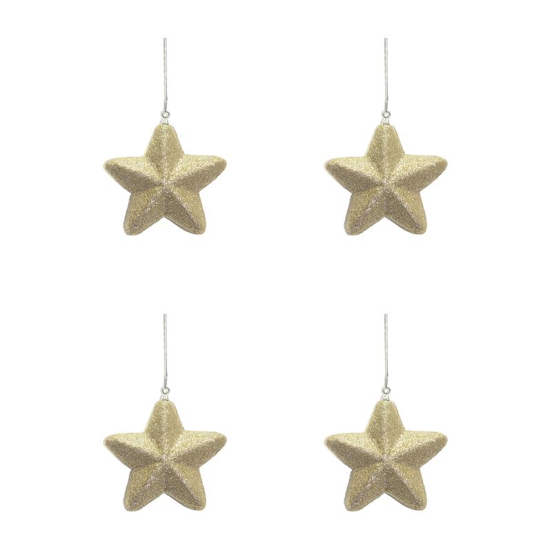 SADA VIANOČNÝCH OZDÔB HVIEZDA SO ZÁVESOM, 4 KUSY, 3D, ZLATÁ