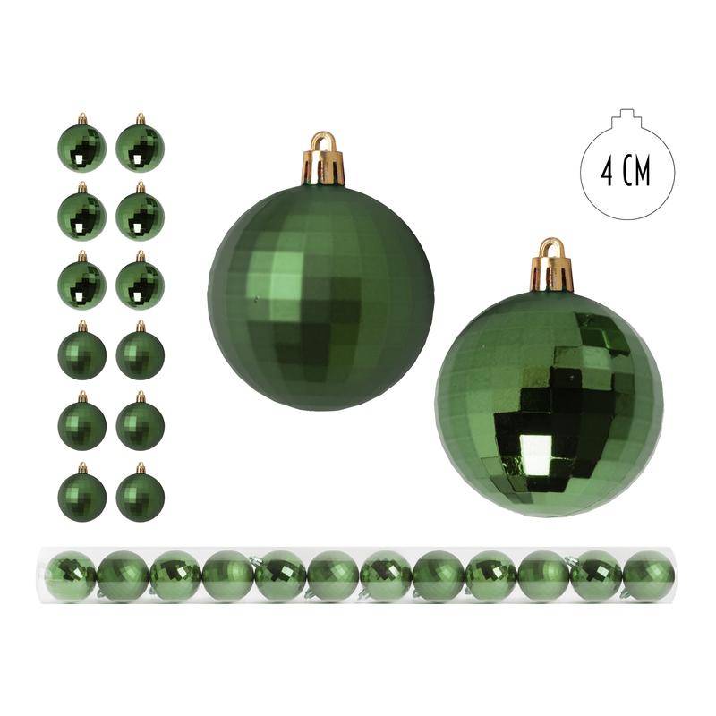 VIANOČNÁ OZDOBA, DISKO GUĽA, SADA, V PVC KRABICI, 12 KUSOV, TMAVOZELENÁ