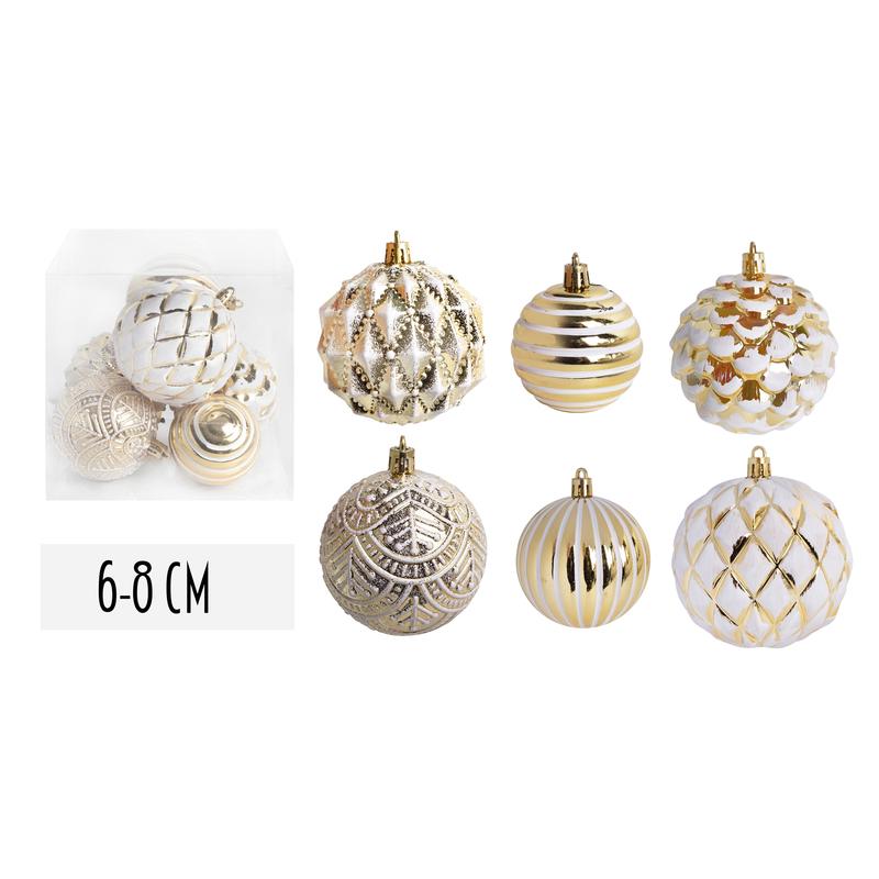 • VIANOČNÉ OZDOBY GUĽÔČKOVÉ, SADA V PVC KRABICI, ZMIEŠANÉ, 6 KUSOV, BIELA A ZLATÁ