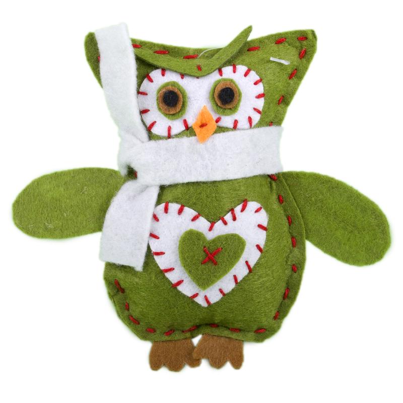 • PLSTENÁ ŠATKA SO SOVOU ZELENÁ/BIELA