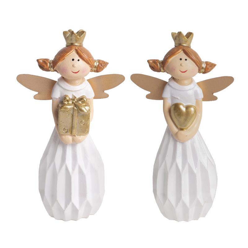 POLYRESINOVÝ ANJEL, STOJACI, S KORUNKOU, BIELY A ZLATÝ, S DARČEKOM ALEBO SRDCOM