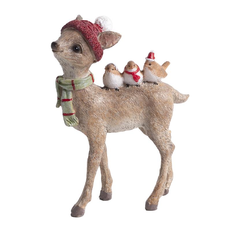 POLYRESINOVÝ JELEŇ, STOJACI, SANTA KLOBÚK, ŠÁL, ZVIERATÁ NA CHRBTE