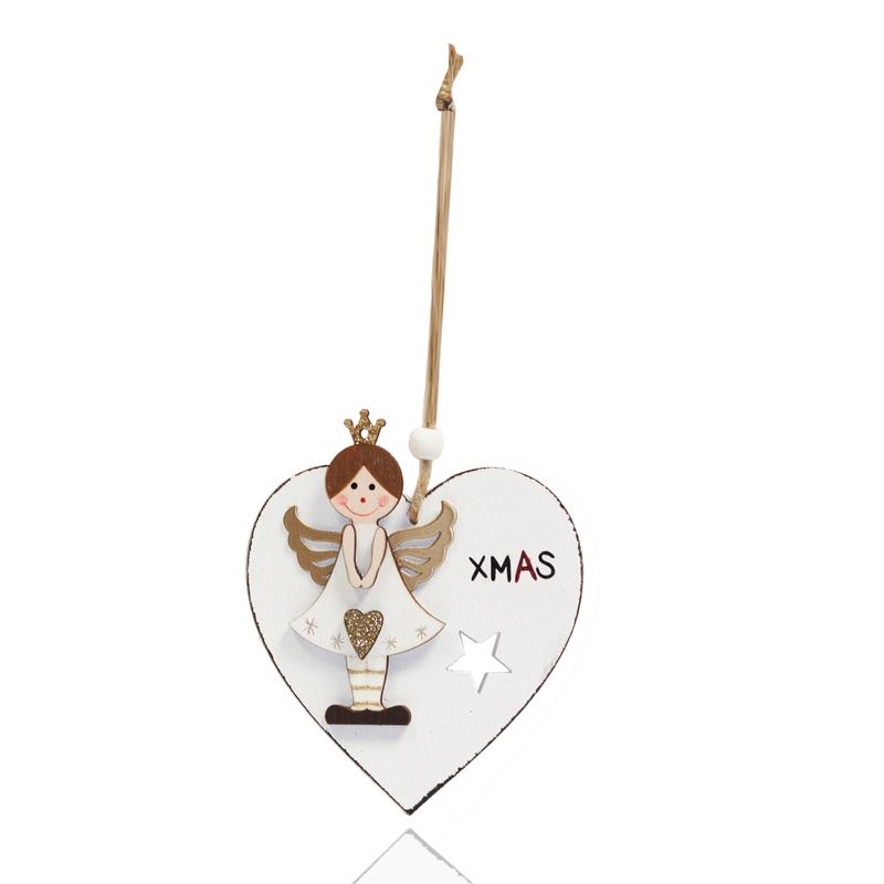DEKOR DREVENÁ ZÁVESNÁ OZDOBA SRDCE S ANJELOM, ZLATÁ