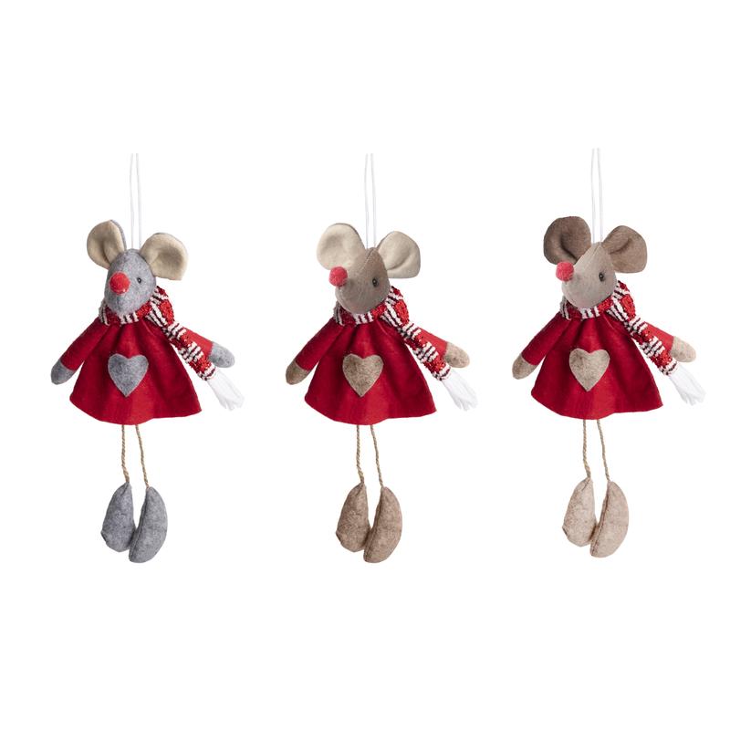 DEKOR TEXTILNÁ MYŠ, ZÁVESNÉ, BORDOVÉ SRDCOVÉ ŠATY