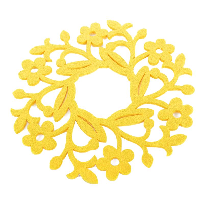 PLSTENÝ PODTÁCEK, OKRÚHLY, KVETINOVÝ, ŽLTÝ