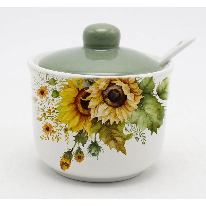 • KERAMICKÁ CUKORNIČKA S LYŽIČKOU, VZOR SLNEČNICE