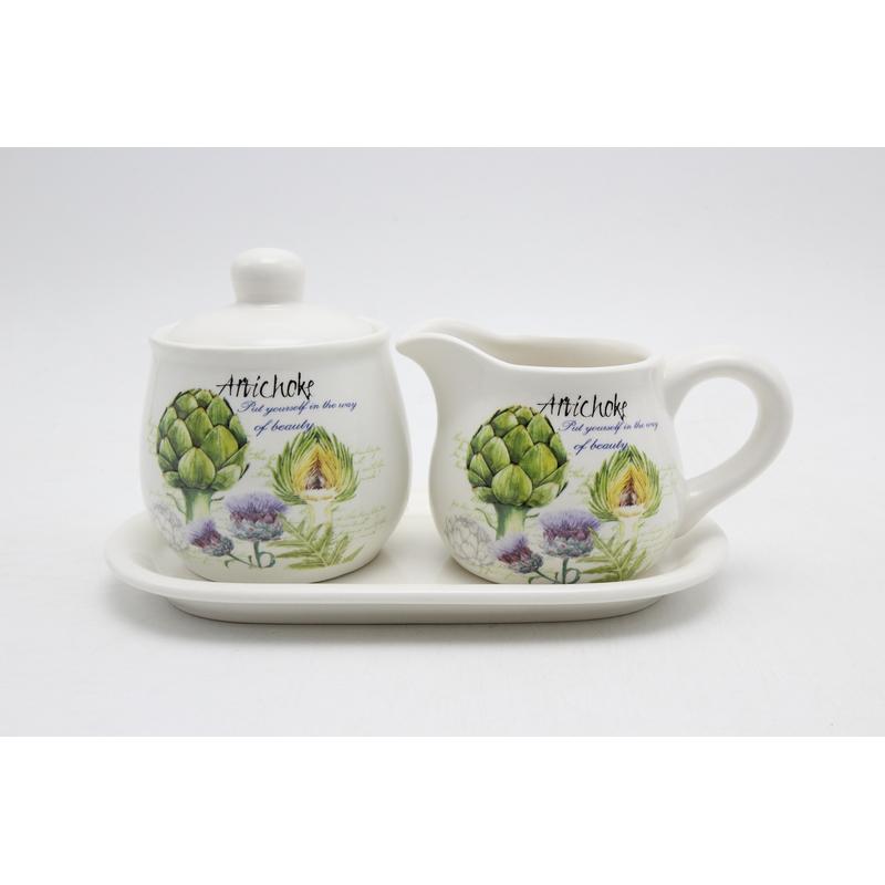 KERAMICKÝ DRŽIAK NA MLIEKO A CUKOR, VZOR ARTIČOK