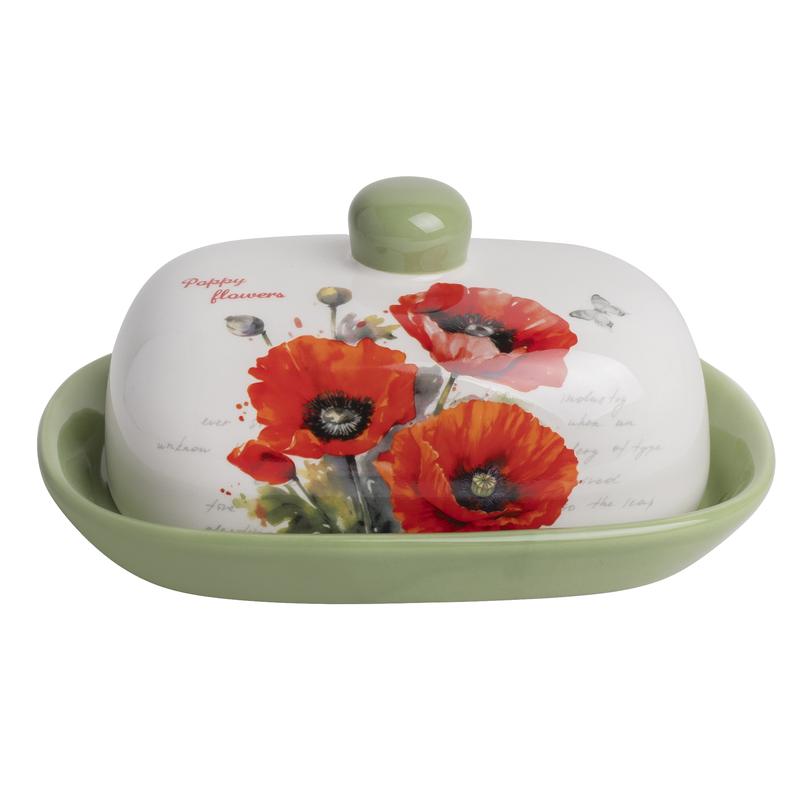 KERAMICKÁ MISKA NA MASLO, VZOR ČERVENÝ MAK