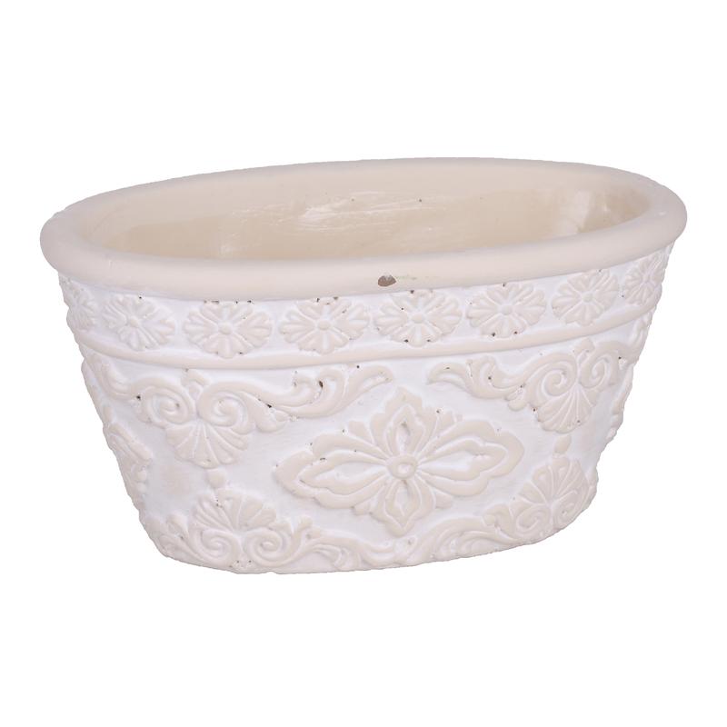 BETÓNOVÝ KVETINÁČ, OVÁLNY, SO VZOROM CIRADA, KRÉMOVÁ