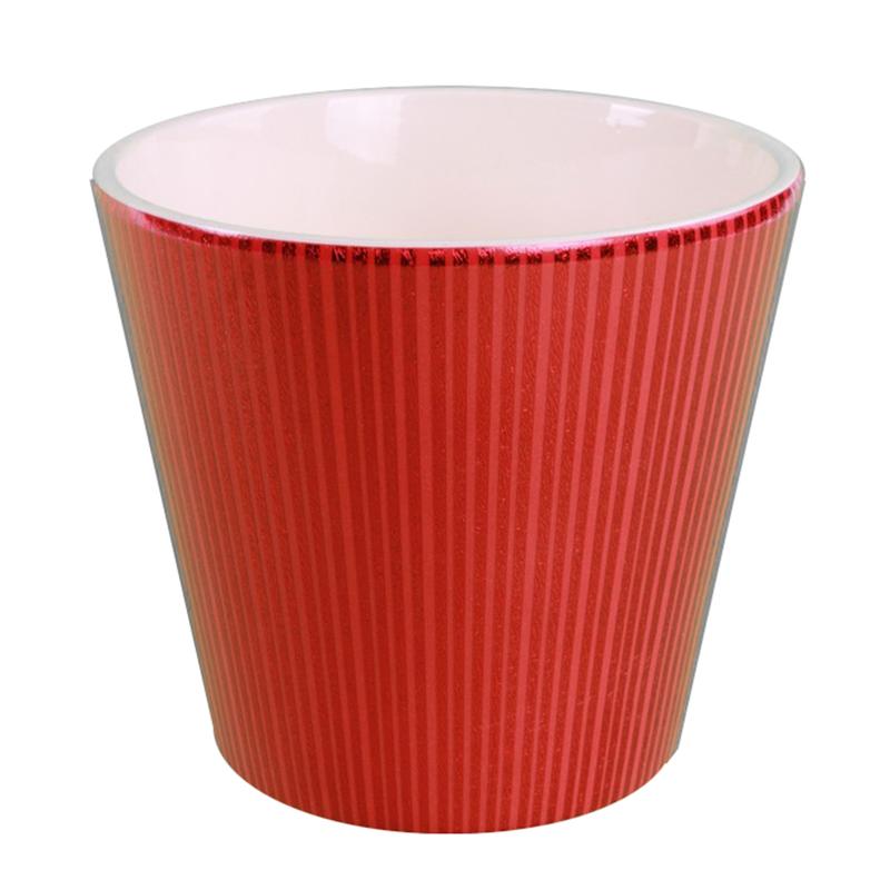 KERAMICKÁ VÁZA, TVAR "V", BORDOVÝ PRUH