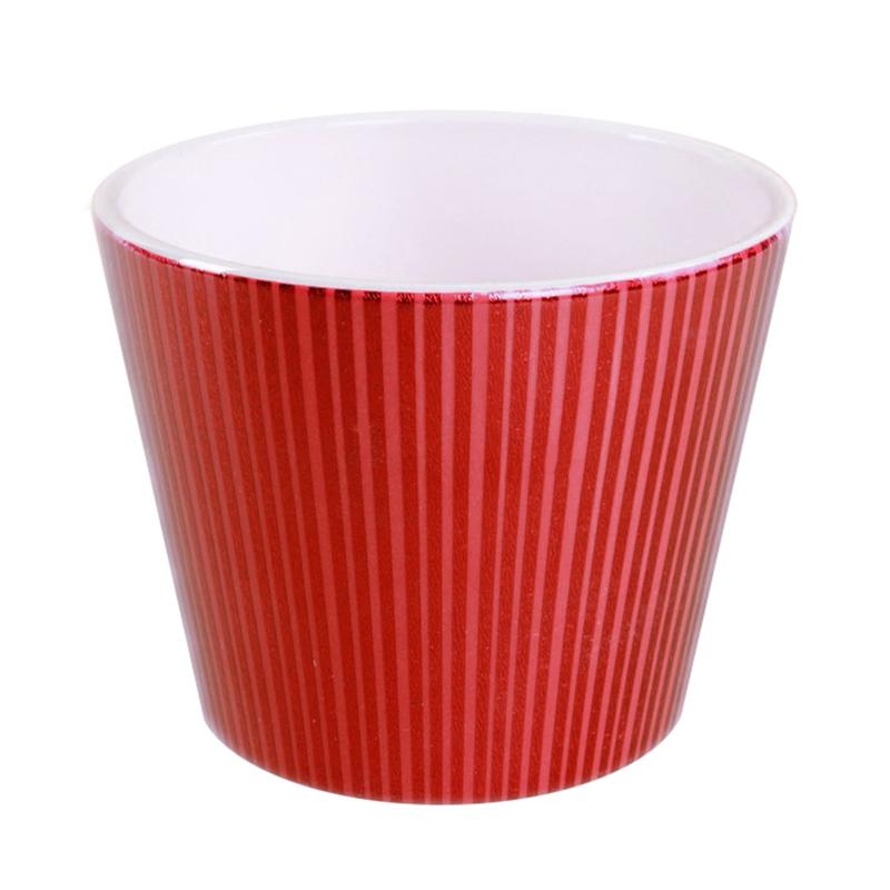 KERAMICKÁ VÁZA, TVAR "V", BORDOVÝ PRUH
