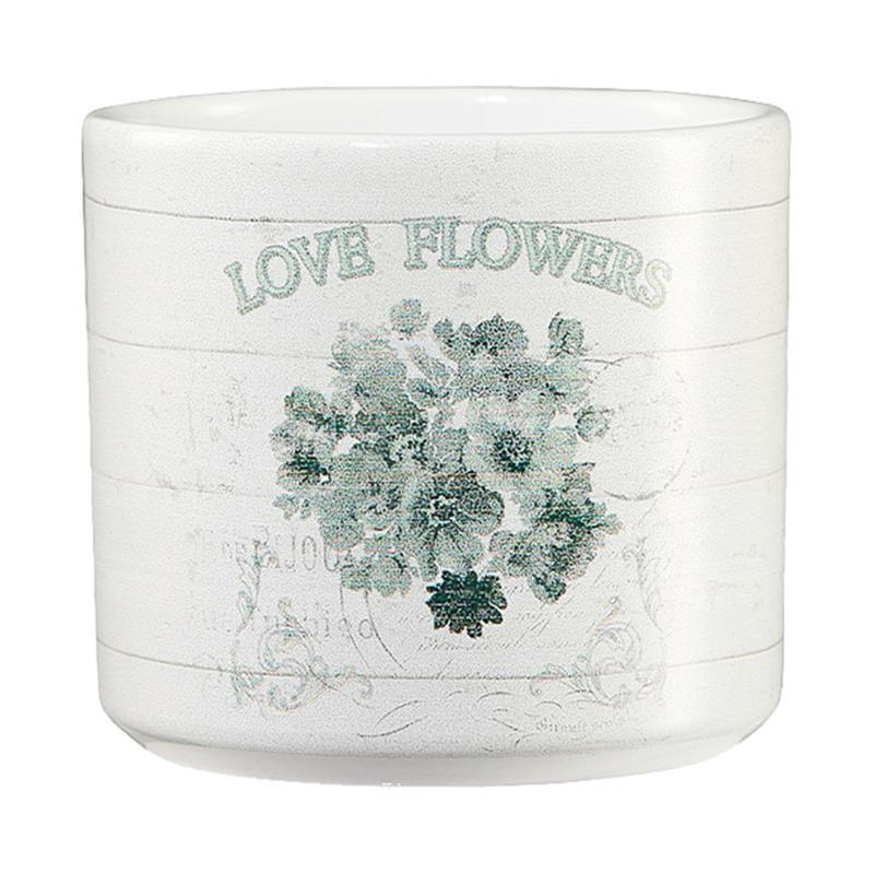 KERAMICKÝ KVETINÁČ, "VINTAGE GARDEN FLOWERS" S NÁPISOM "LOVE FLOWERS", BIELY