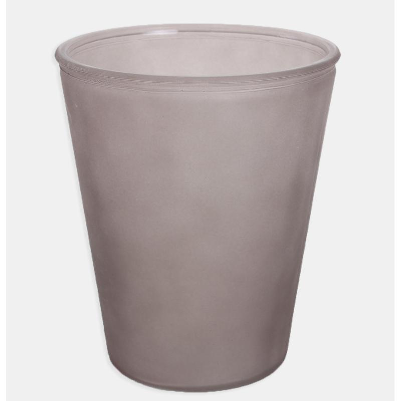 • SKLENENÁ VÁZA V TVARE PÍSMENA "V", OKRÚHLA, PIESKOVANÁ, HNEDÁ