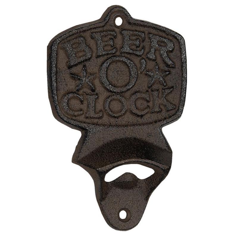 LIATINOVÝ OTVÁRAČ NA FĽAŠE, NÁSTENNÝ, NÁPIS "BEER CLOCK", STAROŽITNÝ