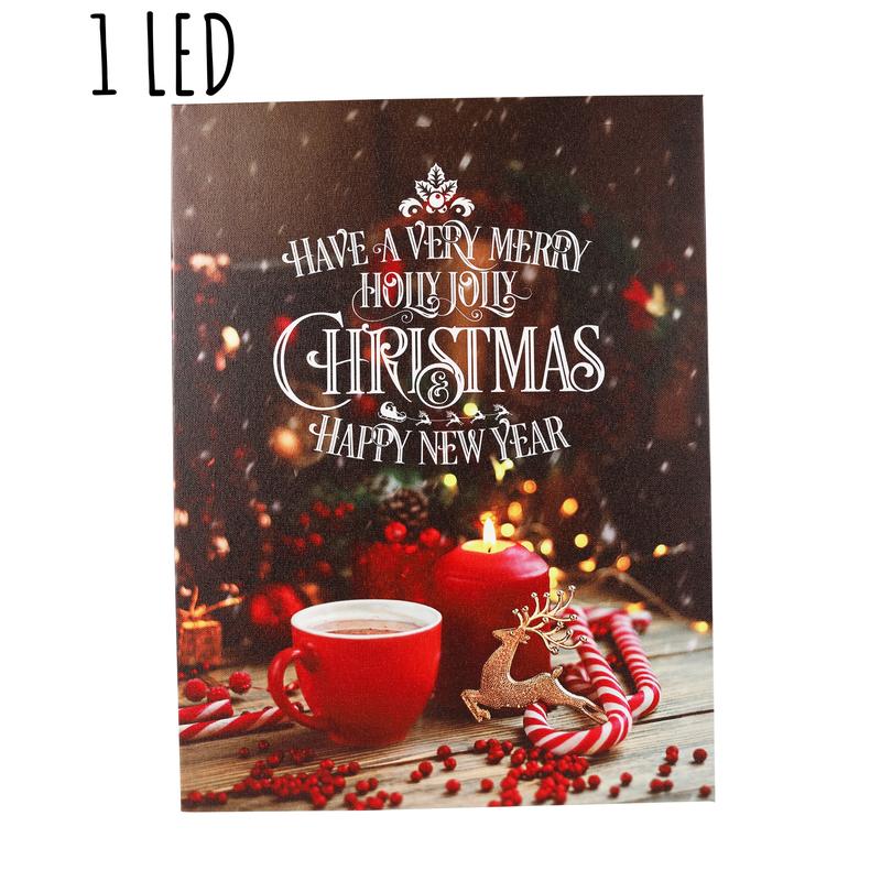 PLÁTNO OSVETLENÝ OBRAZ S 1 LED, "HAVE A VERY MERRY HOLLY JELLY CHRISTMAS HAPPY NEW YEAR"