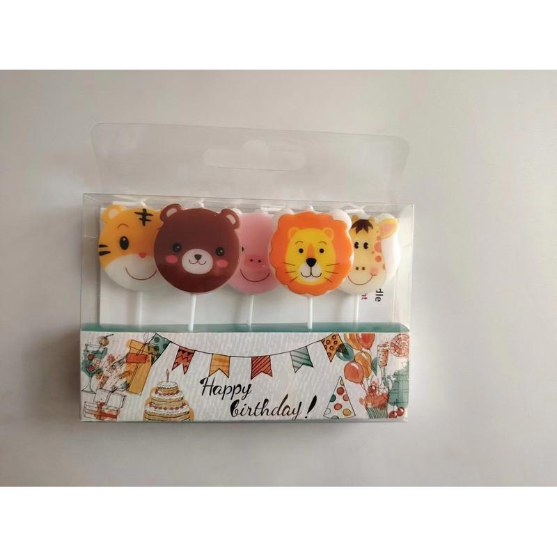 NARODENINOVÁ SVIEČKA, SADA 5 KUSOV, HLAVY ZVIERAT ZO ZOO