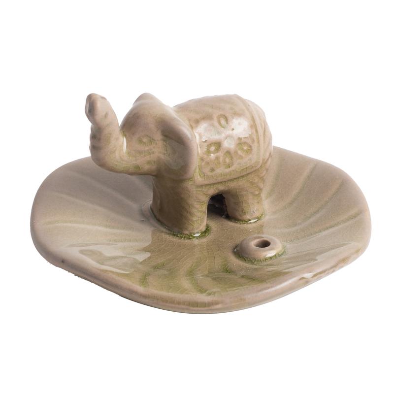 KERAMICKÝ KADIDELNÍK, OKRÚHLY, SO SLONOM, ZELENÝ