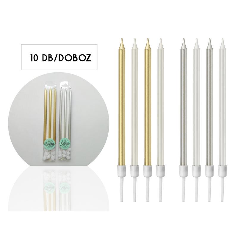 • SADA NARODENINOVÝCH SVIEČOK, 10 KUSOV, BIELA A STRIEBORNÁ METALÍZA, BIELA A ZLATÁ METALÍZA