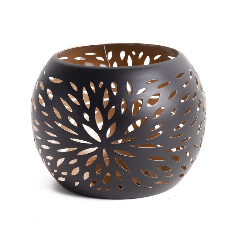 • KOVANÝ SVIETNIK, AŽUROVÝ, KVETINOVÝ VZOR, ČIERNY