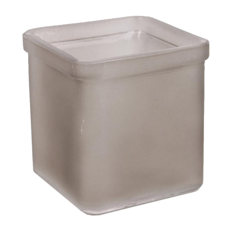 SKLENENÝ SVIETNIK KOCKA HNEDÝ MATNÝ
