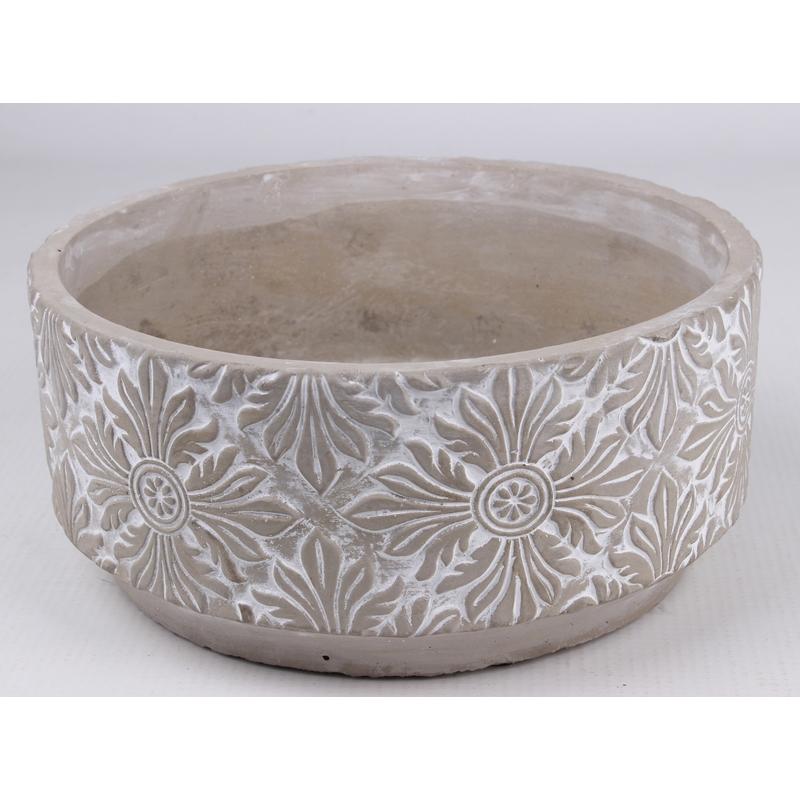 BETÓNOVÝ KVETINÁČ S KVETINOVÝM VZOROM, SIVÝ