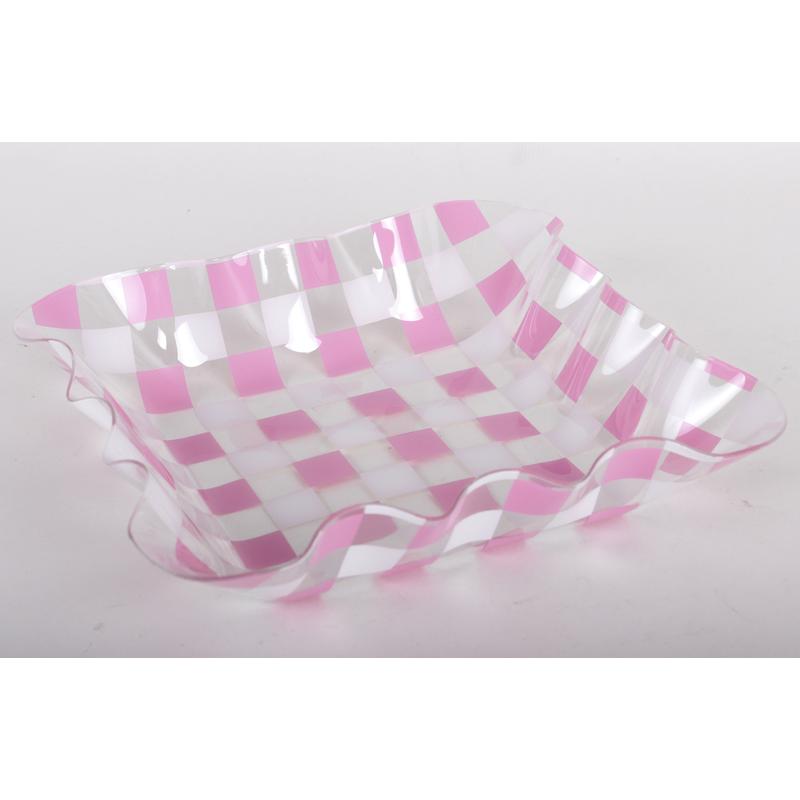 PLASTOVÁ MISKA OBDĹŽNIK KÁROVANÁ RUŽOVÁ/BIELA