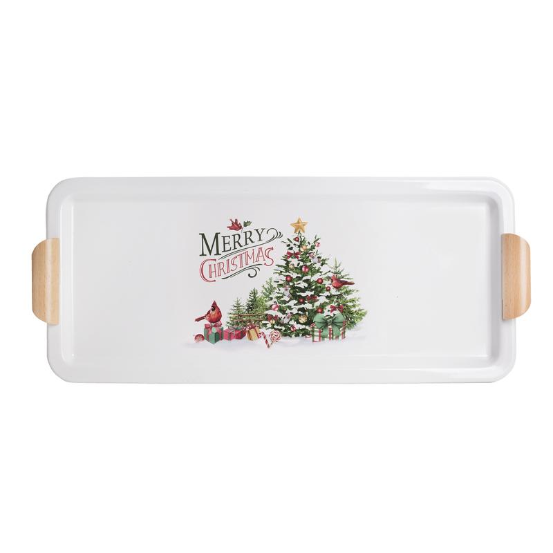 PLECHOVÝ PODNOS, BOROVICOVÉ DREVO "MERRY CHRISTMAS"