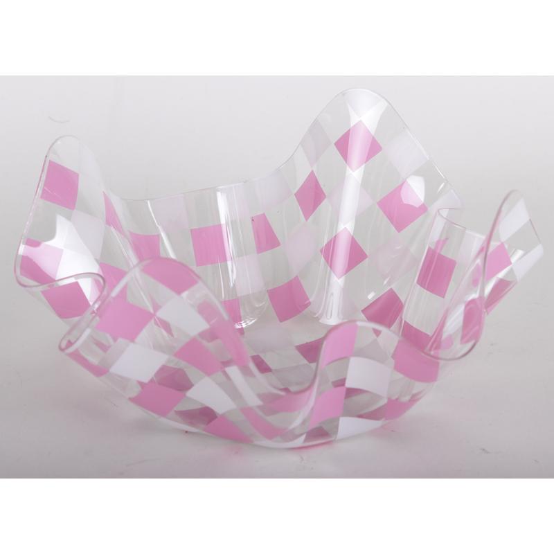 PLASTOVÁ MISKA ZVLNENÁ KOCKOVANÁ RUŽOVÁ/BIELA