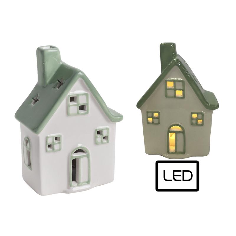 • PORCELÁNOVÝ DOMČEK, LEDDEL, BIELOZELENÝ