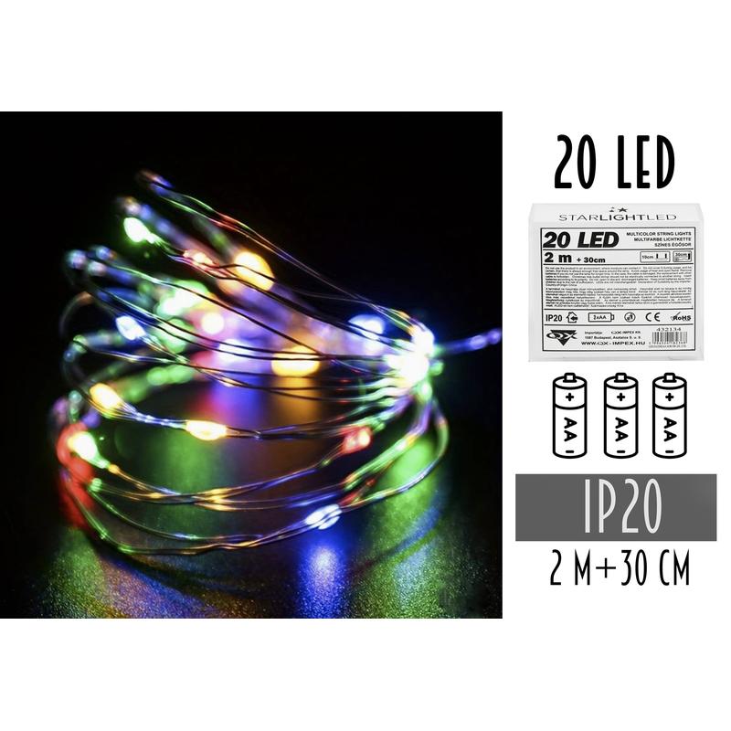 BATÉRIOVÝ DRÔTOVÝ REŤAZEC 2AA, 20 LED, FAREBNÝ, BEZ BATÉRIE