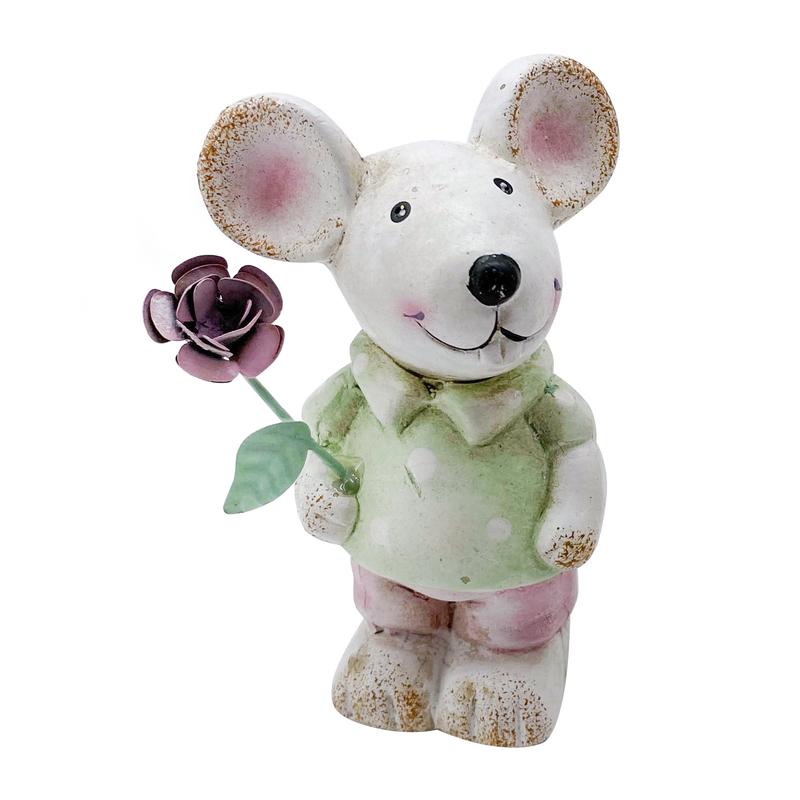 KERAMICKÁ MYŠ V BODKOVANÝCH ŠATÁCH, ZELENÁ ALEBO RUŽOVÁ
