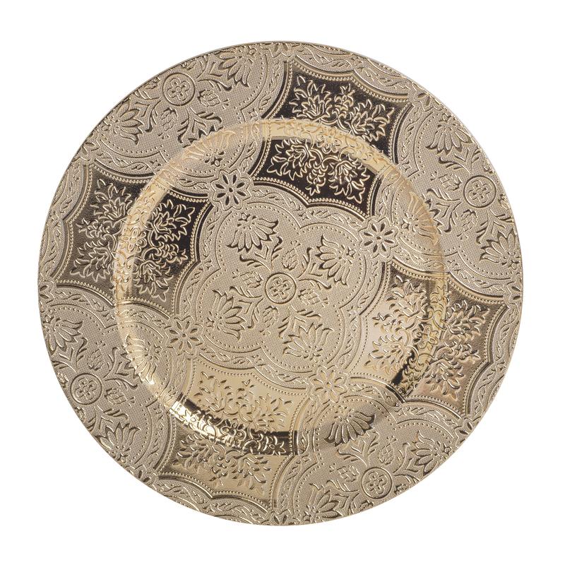 PLASTOVÝ PODNOS, OKRÚHLY, KVETINOVÝ VZOR, ZLATÝ A ČIERNY