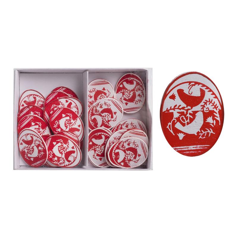 OZDOBNÉ DREVENÉ VAJÍČKA, 24 KUSOV, BIELE A ČERVENÉ