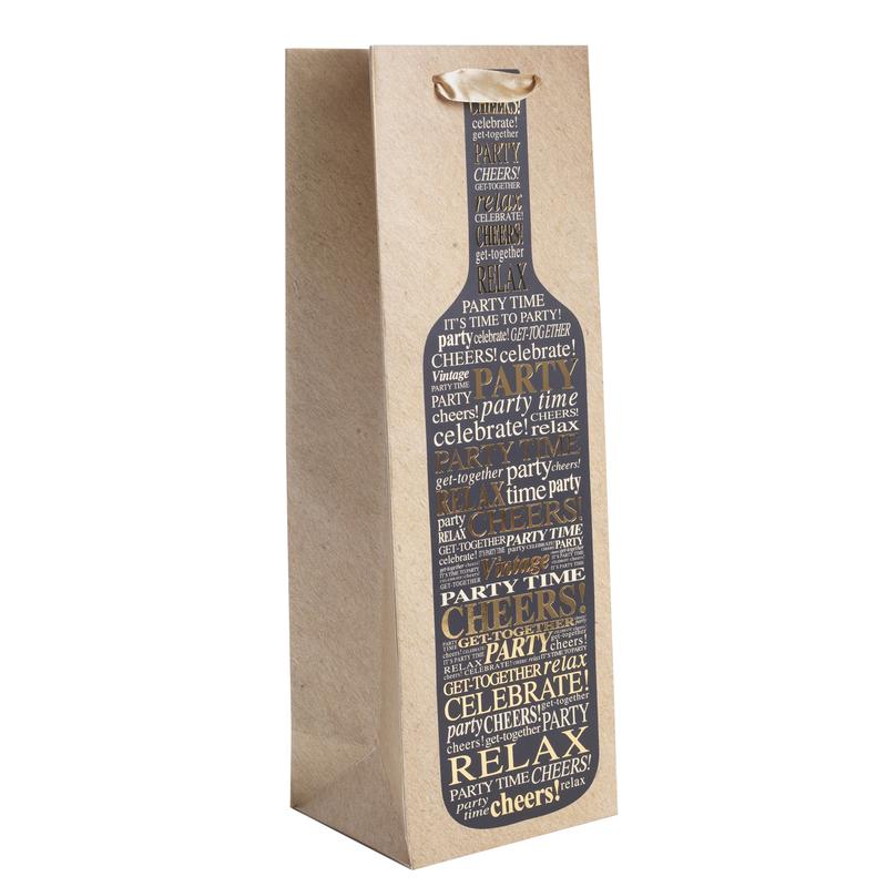 • PAPIEROVÁ TAŠKA NA VÍNO SO ZLATOU POTLAČOU, FĽAŠA NA VÍNO S NÁPISOM, PRÍRODNÁ