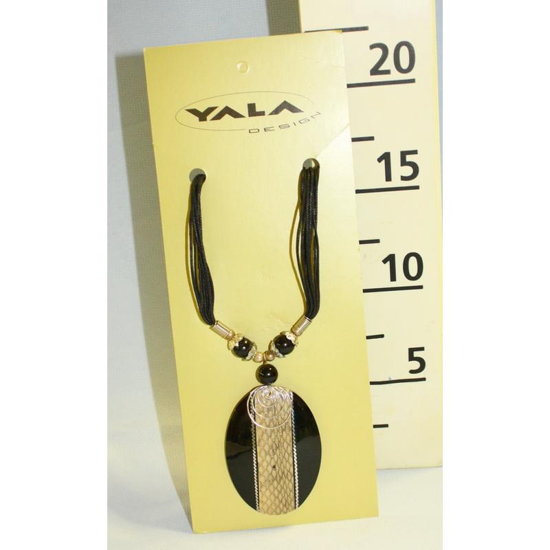 • PRÍRODNÝ NÁHRDELNÍK S OVÁLNYM PRÍVESKOM, KRÉMOVO-ČIERNY PRUH