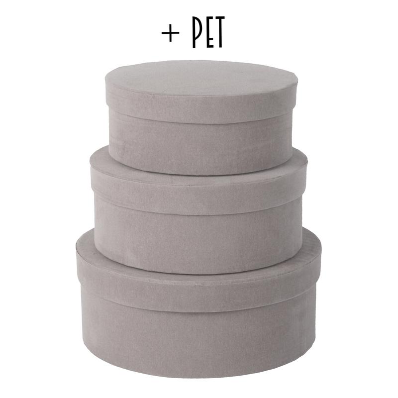• SADA PAPIEROVÝCH KRABÍC, 3 KUSY, OKRÚHLA, BETÓNOVÁ SIVÁ