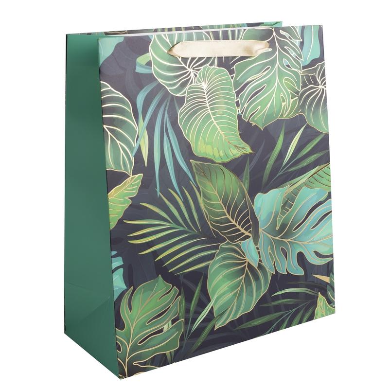 • PAPIEROVÉ TAŠKY MAT. ZLATÁ LESKLÁ POTLAČ ZELENÉ LISTY