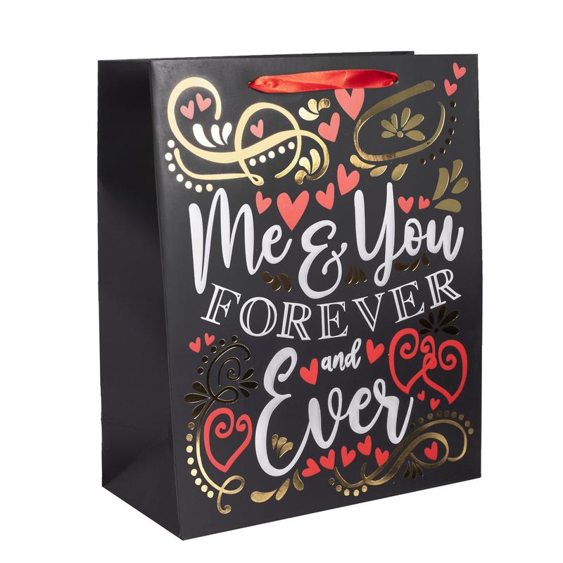 PAPIEROVÉ TAŠKY S MATNOU, LESKLOU POTLAČOU, NÁPIS "ME&YOU FOREVER AND EVER"