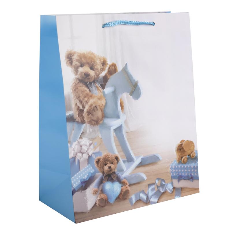 PAPIEROVÉ TAŠKY S MATNÝM, MEDVEDÍM A MODRÝM VZOROM HOJDACIEHO KONÍKA