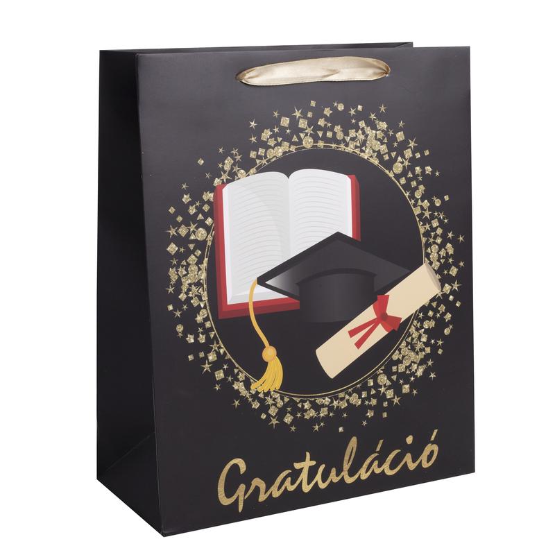 PAPIEROVÉ VRECKO, MATNÉ, ČIERNE, CERTIFIKÁT, S NÁPISOM " GRATULÁCIÓ "