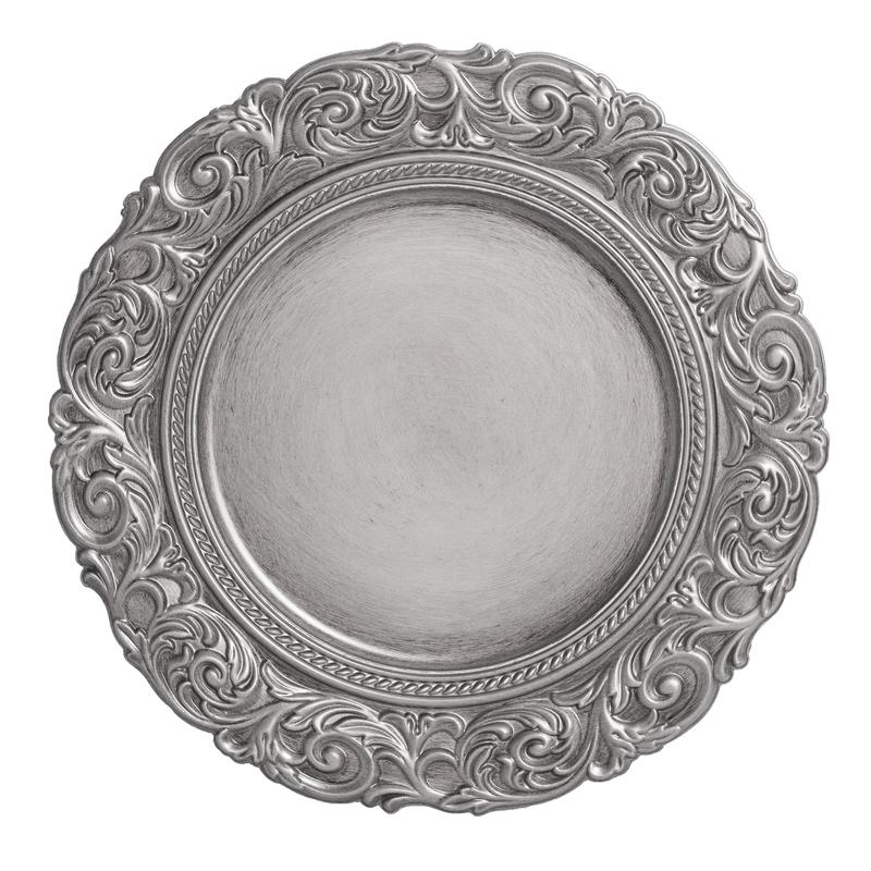 PLASTOVÝ PODNOS, OKRÚHLY, INDA OKRAJ, STRIEBORNÝ
