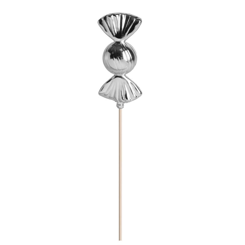 DEKOR PLASTOVÝ CUKOR NA PALIČKE, STRIEBORNÝ