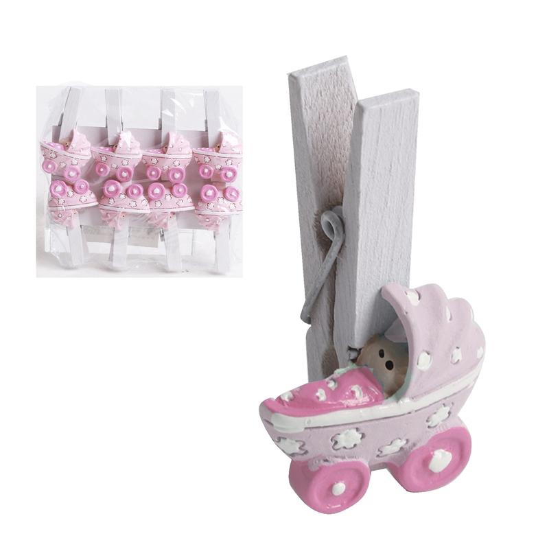POLYRESINOVÁ PINZETA S KOČÍKOM V SÁČKU, 8 KUSOV, RUŽOVÁ