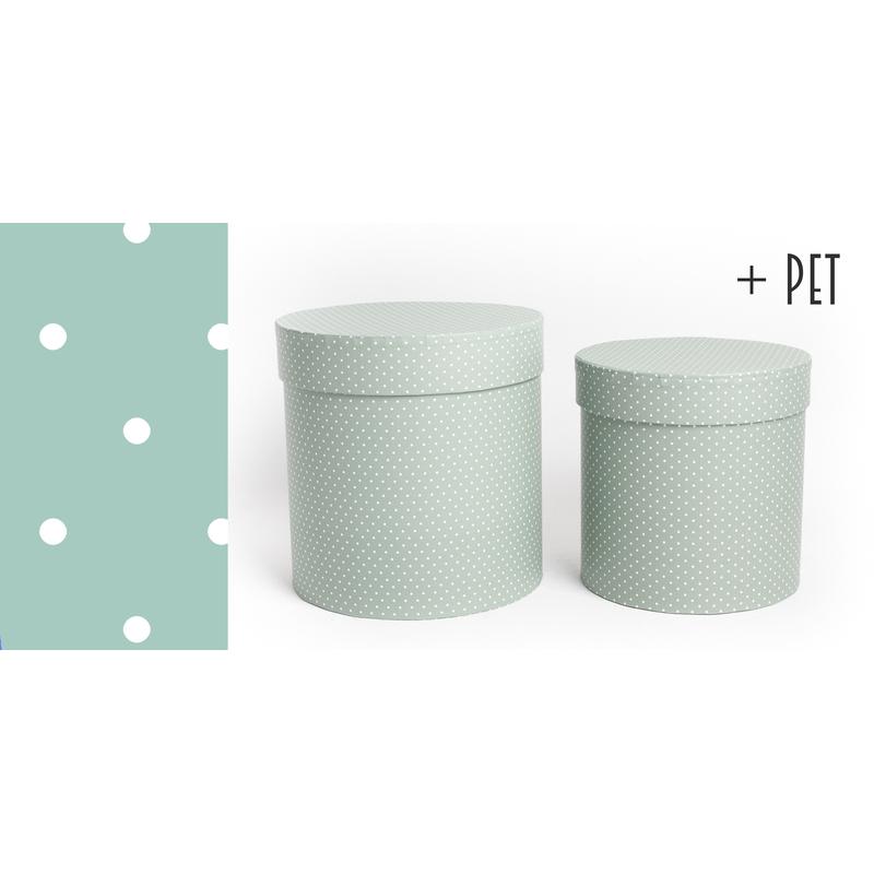 SADA PAPIEROVÝCH KRABÍC, 2 KUSY, OKRÚHLA, ĽADOVO ZELENÁ, TICHÉ BODKY + ZVIERATKO