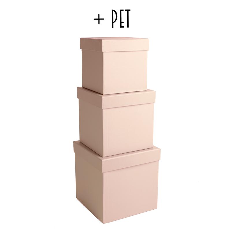SADA PAPIEROVÝCH KRABÍC, 3 KUSY, ŠTVORCOVÁ, KRÉMOVÁ RUŽOVÁ + PET