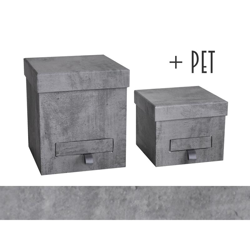 SADA PAPIEROVÝCH ŠKATÚĽ, 2 KUSY, SO ZÁSUVKAMI, BETÓNOVÁ SIVÁ