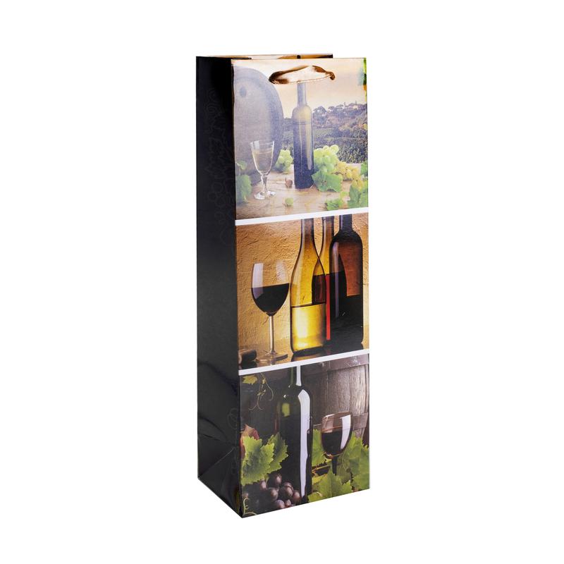 PAPIEROVÁ TAŠKA S VÍNOM LESKLÁ, S CHLOPŇOU SO STUHOU, VINIČ